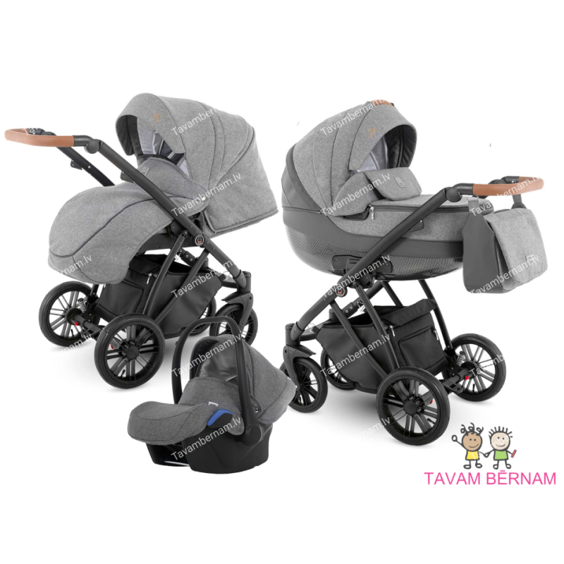 Šajā modelī ietilpst dziļa un plaša (82*39cm) kulbiņa jaundzimušajam, sporta daļa bērniem no 6 mēnešu līdz 3 gadiem vecuma un autosedeklis 0+ kg. Visas daļas ir iespējams izmantot abos virzienos. Unikāls un oriģināls dizains - auduma un ekoadas kombinācija. Ratiņi lieliski izceļas starp līdzīgiem ratiņu modeļiem. Augsta kvalitāte, viegla eksplotacija, laba manevrētspēja un ļoti mīksta amortizācija. Īpaši jāatzīmē, ka ratiņiem ir viegls alumīnija rāmis ar papildu amortizāciju un lielu komplektāciju